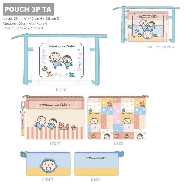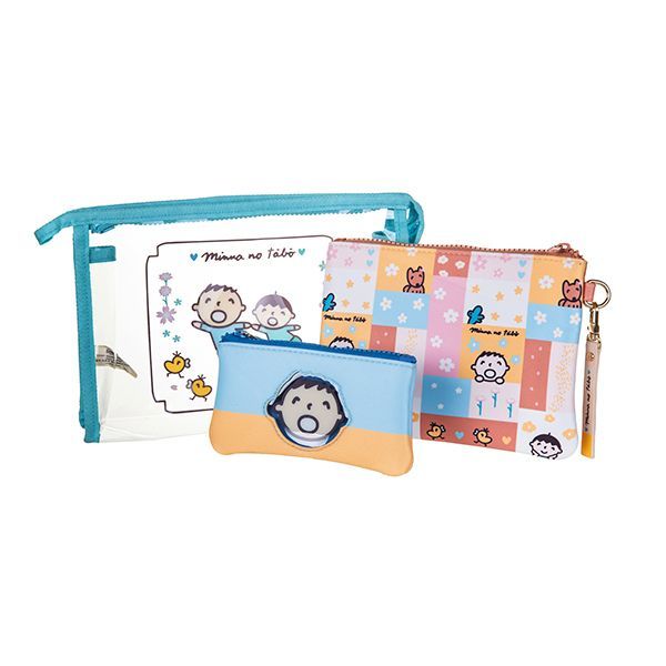 SANRIO-MINNA NO TABO 大口仔 GLOBAL版 扁平 拉鍊 POUCH 套裝 收納袋 儲物袋 小物袋 3件 套裝 2023年款 生日系列 大寶 【平行進口】
