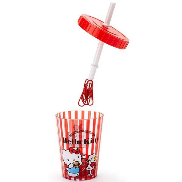 HELLO KITTY 日版 文具 萬字夾 連 汽水杯 造型 收納盒 迴紋針 飲料杯 小物盒 凱蒂貓 2019年款 【平行進口】