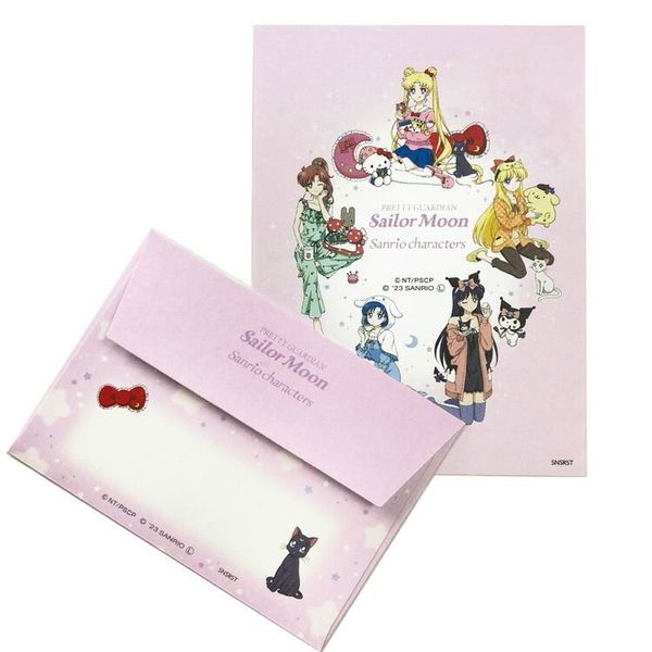 美少女戰士 SAILORMOON X SANRIO 日版 文具 迷你 信封 信紙 套裝 書寫 通信 2023年款(睡衣派對系列)內部戰士 玉桂狗 布甸狗 MARRON CREAM A款 平行進口
