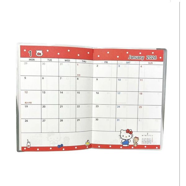 SANRIO-HELLO KITTY 日版 2026 薄款 A6 手帳 SCHEDULE BOOK 記事本 月曆 日本假期 凱蒂貓 吉蒂貓【平行進口】