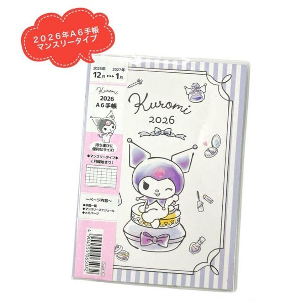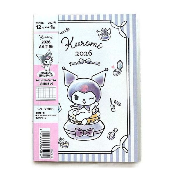 SANRIO-KUROMI 日版 2026 薄款 A6 手帳 SCHEDULE BOOK 記事本 月曆 日本假期 酷洛米 庫洛米 可羅米【平行進口】