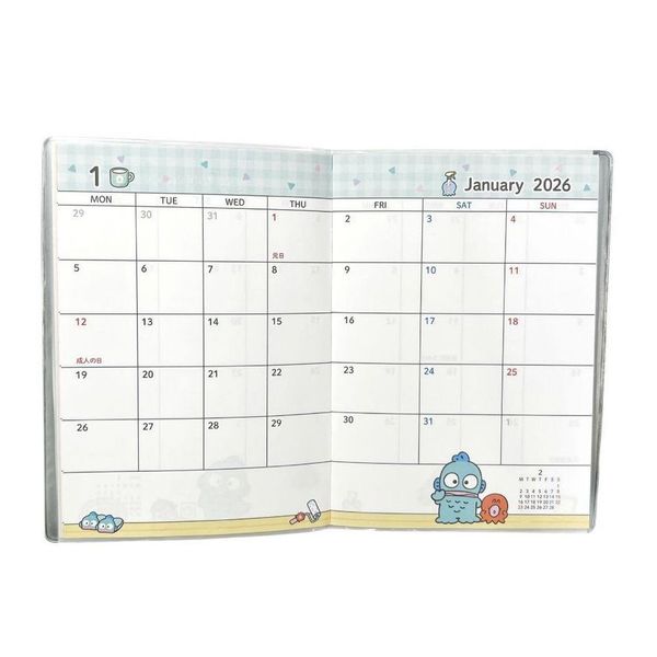 SANRIO-HANGYODON 水怪 日版 2026 薄款 A6 手帳 SCHEDULE BOOK 記事本 月曆 日本假期 海怪 人魚漢頓【平行進口】