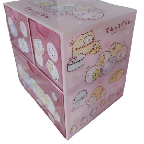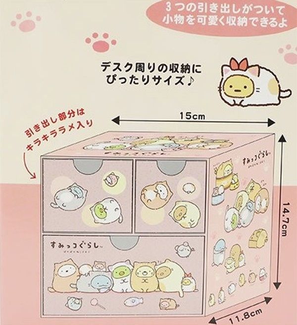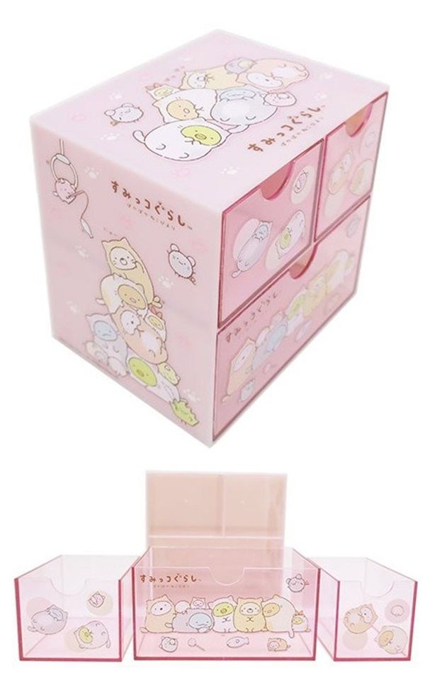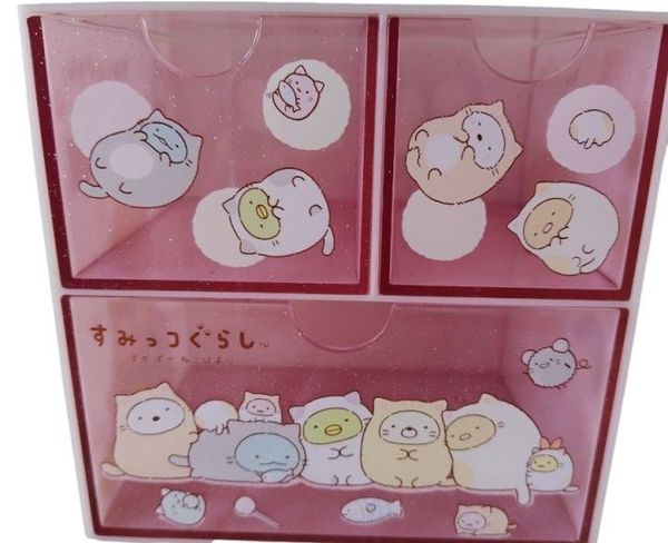 KCOMPANY-SAN-X SUMIKKO GURASHI 角落生物 日版 桌上 三格 小物 收納盒 抽屜 儲物盒 小櫃桶 2017年款 日本限定版 角落小夥伴 (粉紅)【平行進口】