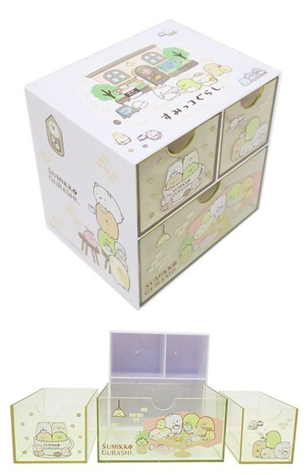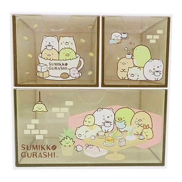 KCOMPANY-SAN-X SUMIKKO GURASHI 角落生物 日版 桌上 三格 小物 收納盒 抽屜 儲物盒 小櫃桶 2017年款 日本限定版 角落小夥伴 (黃)【平行進口】