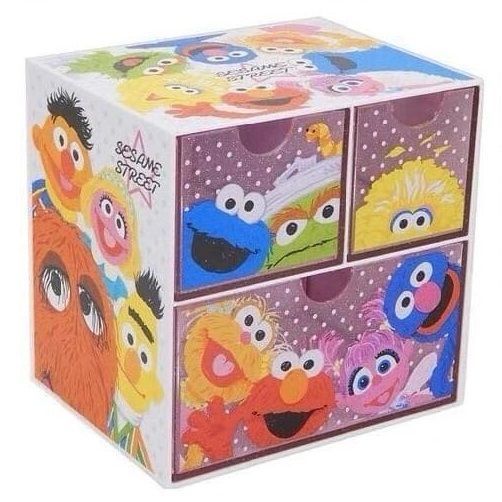 KCOMPANY-芝麻街 SESAME STREET 日版 桌上 三格 小物 收納盒 抽屜 儲物盒 小櫃桶 2018年款 日本限定 (圓點) 餅乾怪獸 【平行進口】