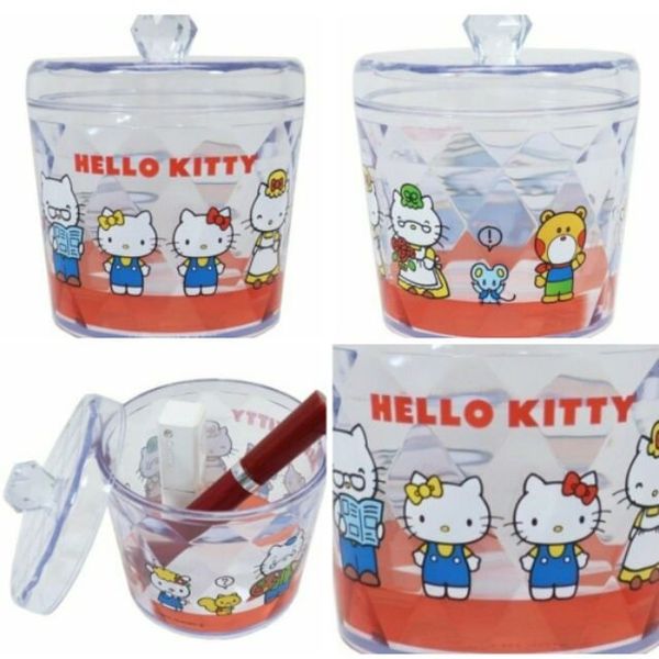 HELLO KITTY 日版 桌上 鑽石感 圓形 揭蓋 收納盒 儲物盒 飾物盒 日本限定 凱蒂貓 2019年款 (SAD 系列) 【平行進口】