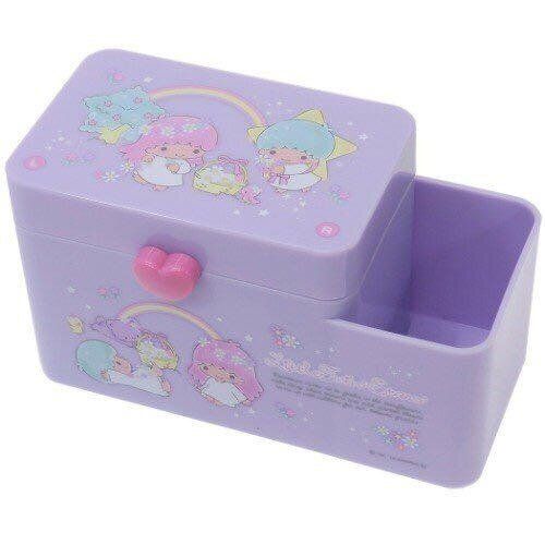 LITTLE TWIN STARS 日版 桌上 塑膠 揭蓋 筆筒 收納盒 儲物盒 飾物盒 小物盒 棉花盒 雙子星 KIKI LALA 雙星仙子 【平行進口】