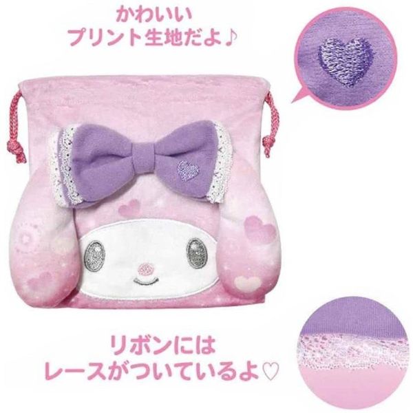 SANRIO MY MELODY 日版 毛絨 大臉 索袋 索繩袋 索繩包 收納袋 儲物袋 小物袋 日本限定 美樂蒂 2022年 (YUMEKIYUN系列) 【平行進口】