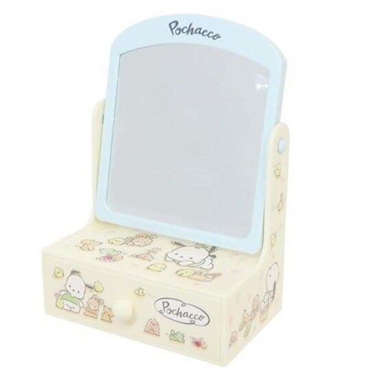 JAPAN SANRIO POCHACCO PC狗 日版 桌上 鏡櫃 化妝鏡 抽屜 收納盒 飾物盒 儲物盒 首飾盒 梳妝櫃 置物櫃 日本限定 帕恰狗 2022年款 【平行進口】