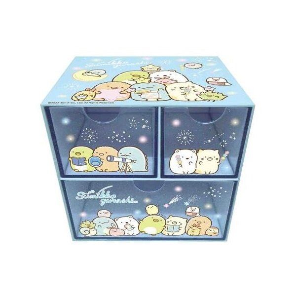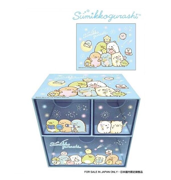 SUMIKKO GURASHI 角落生物 日版 桌上 三格 收納盒 抽屜 儲物 小櫃桶 角落小夥伴 日本限定 2022年款 (藍色) 【平行進口】