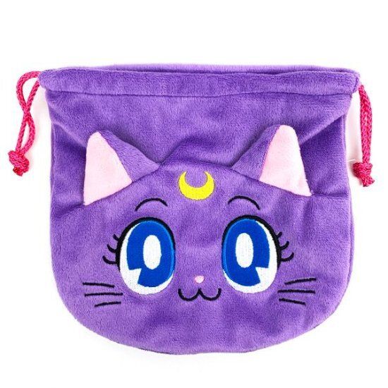 美少女戰士 SAILORMOON 日版 大頭 毛絨 毛草茸 索袋 索繩袋 收納袋 小物袋 索繩包 便攜 2022年款 (露娜) 【平行進口】