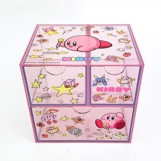 KCOMPANY-NINTENDO 星之卡比 KIRBY 日版 桌上 三格 小物 收納盒 抽屜 儲物 小櫃桶 2023年款 (粉紅)【平行進口】
