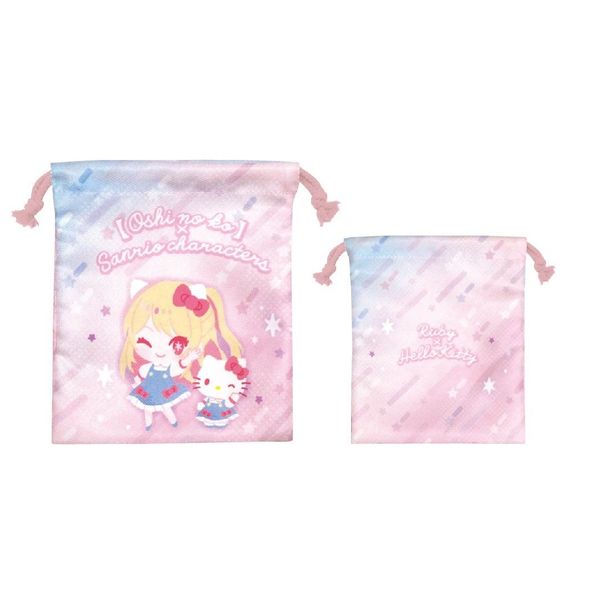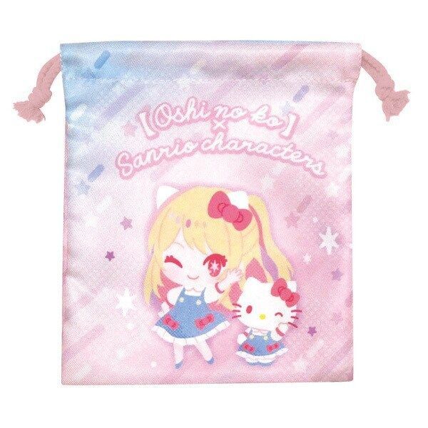 KCOMPANY-我推的孩子 X SANRIO 日版 索袋 收納袋 索繩袋 儲物袋 抽繩包 小物袋 2023年 插圖系列 (露比 X HELLO KITTY) 凱蒂貓 吉蒂貓 星野瑠美衣 【平行進口】