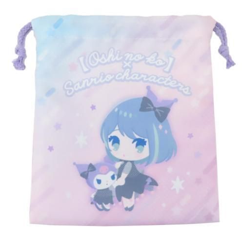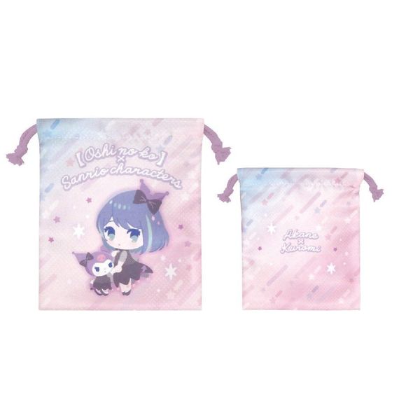 KCOMPANY-我推的孩子 X SANRIO 日版 索袋 收納袋 索繩袋 儲物袋 抽繩包 小物袋 2023年 插圖系列 (黑川赤音 X KUROMI) 酷洛米 庫洛米 可羅米 黑川茜 【平行進口】