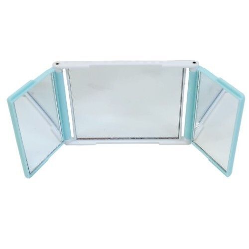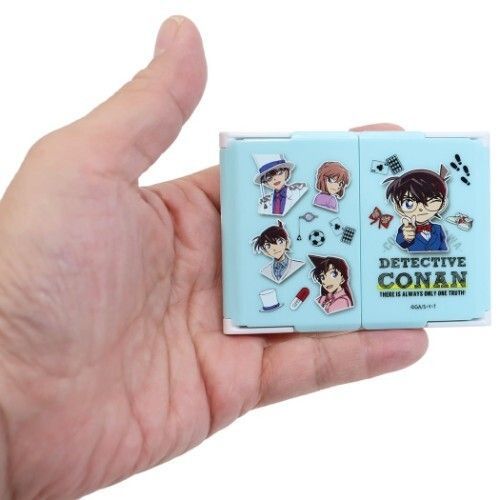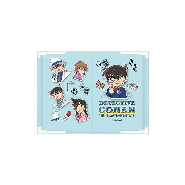 CRUX-名偵探柯南 日版 便攜 迷你 三摺 折疊 開窗 鏡子 化妝鏡 手鏡 放大鏡 柯南 基德 新一 小蘭 小哀 (粉藍色) 【平行進口】