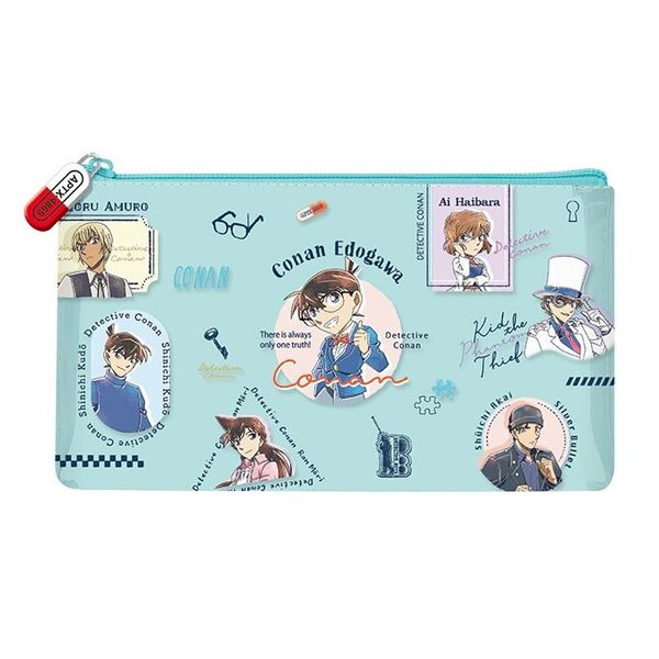 名偵探柯南 日版 文具 PVC 拉鍊 筆袋 網格 收納袋 扁身 小物袋 (綠色) 【平行進口】
