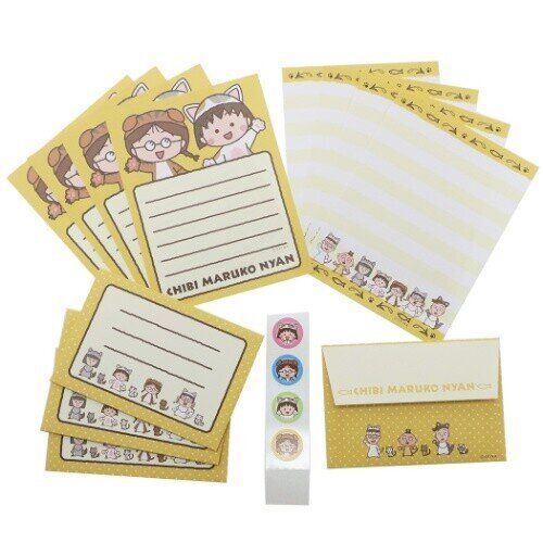櫻桃小丸子 日版 文具 迷你 信封 信紙 套裝 上學 便攜 書寫 情信 通信 (小丸子 小玉 黃色) 【平行進口】