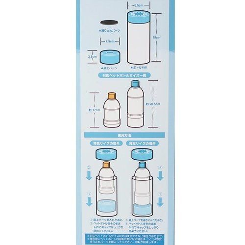 *保冷效果是PET瓶裝滿4°C室溫20°冷水(500毫升) C ± 2°C 和一個蓋子。