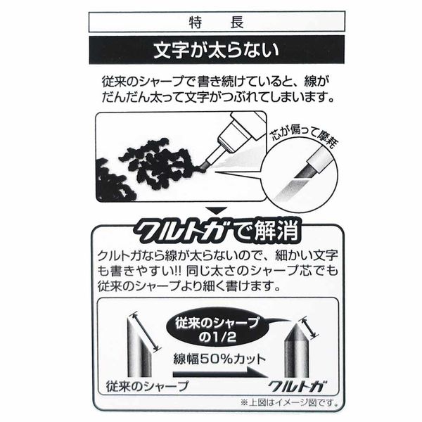 こちらは書くたびに芯が少しづつ回転し、芯がとがり続ける【クルトガシャープ】