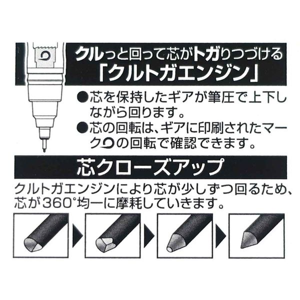 こちらは書くたびに芯が少しづつ回転し、芯がとがり続ける【クルトガシャープ】
