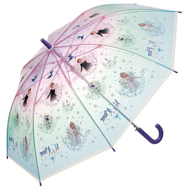 迪士尼 DISNEY 魔雪奇緣 日版 半透明 兒童 雨傘 小童 長遮 彎手柄 長傘 戶外 便攜 防風 雨具 55CM ELSA ANNA 冰雪奇緣 2022年款 【平行進口】