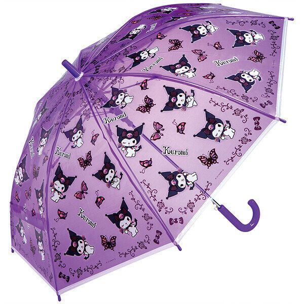 JAPAN SANRIO KUROMI 日版 半透明 兒童 雨傘 小童 長遮 彎手柄 長傘 戶外 便攜 防風 雨具 55CM 酷洛米 庫洛米 可羅米 2022年款 【平行進口】