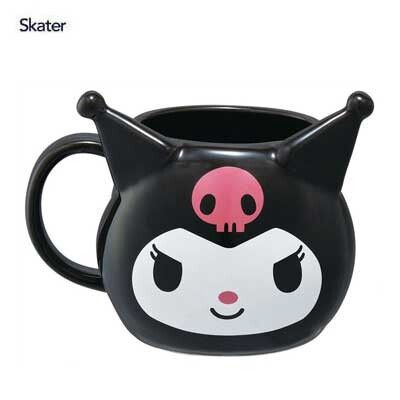SANRIO-KUROMI 日版 SKATER 大臉造型 有耳 陶瓷杯 水杯 咖啡杯 餐具 馬克杯 390ML 2023年款 酷洛米 庫洛米 可羅米【平行進口】