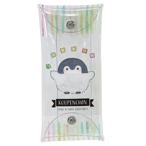 KOUPEN CHAN 正能量企鵝 日版 文具 透明 PVC 筆袋 雙開口 收納袋 上學 小物袋 (直款) 【平行進口】
