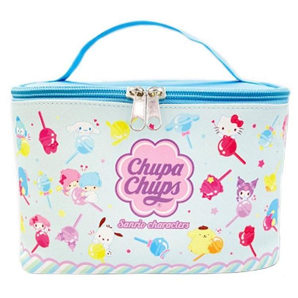 SANRIO-SANRIO CHARACTERS 日版 珍寶珠造型 雙拉鍊 便攜 仿皮 多功能 手提 立體 化妝袋 化妝包 收納包 日本限定 2024 (CHUPACHUPS聯乘) (粉藍) 平行進口