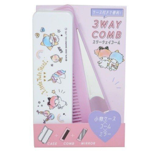 LITTLE TWIN STARS 日版 便攜 3WAY 摺合 鏡子 梳子 連收納盒 套裝 雙子星 KIKI LALA 雙星仙子 【平行進口】