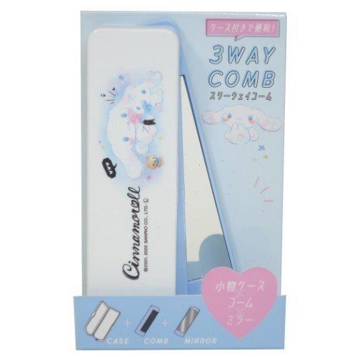 CINNAMOROLL 玉桂狗 日版 便攜 3WAY 摺合 鏡子 梳子 連收納盒 套裝 大耳狗 【平行進口】
