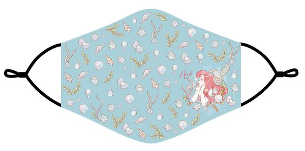 DISNEY PRINCESS 日版 ARIEL 小魚仙 布口罩 可洗 可重用 可調節掛耳繩 可放置過濾層 防花粉 防疫 透氣 迪士尼公主 美人魚 【平行進口】