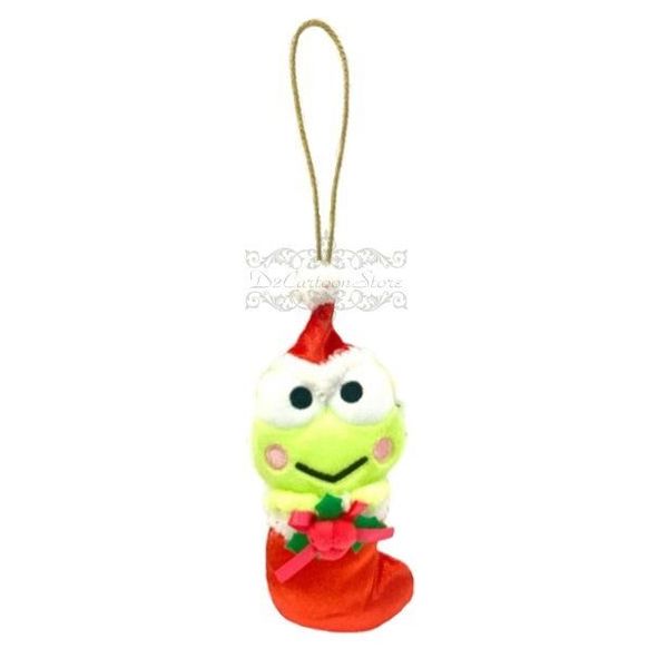 SANRIO-KEROKEROKEROPPI 青蛙 KEROPPI 美版 聖誕襪造型 毛絨 公仔 毛茸茸 娃娃 鑰匙鍊 鎖匙扣 掛件 吊飾 2025年款 X'MAS 大眼蛙 可洛比【平行進口】