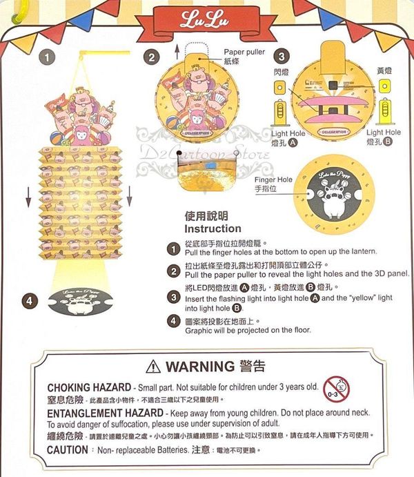 HONG KONG-LULU THE PIGGY 港版 中秋 小號 立體 燈籠 連燈 附LED燈 裝飾 中秋節 通花 投影 手提燈籠 2024年款 罐頭豬 LULU豬 (A款)