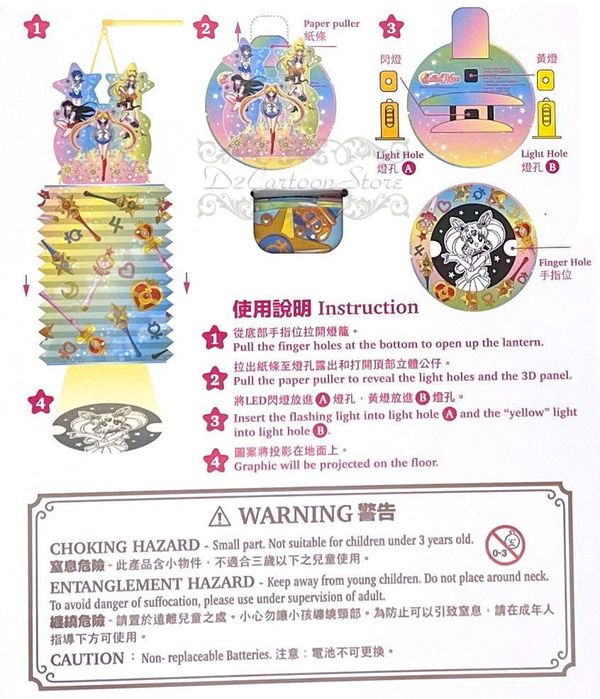 #N_A-美少女戰士 SAILORMOON 港版 中秋 小號 立體 燈籠 連燈 附LED燈 裝飾 中秋節 通花 投影 手提燈籠 2024年款 五戰士 月野兔 火野麗 愛野美奈子 (B款)