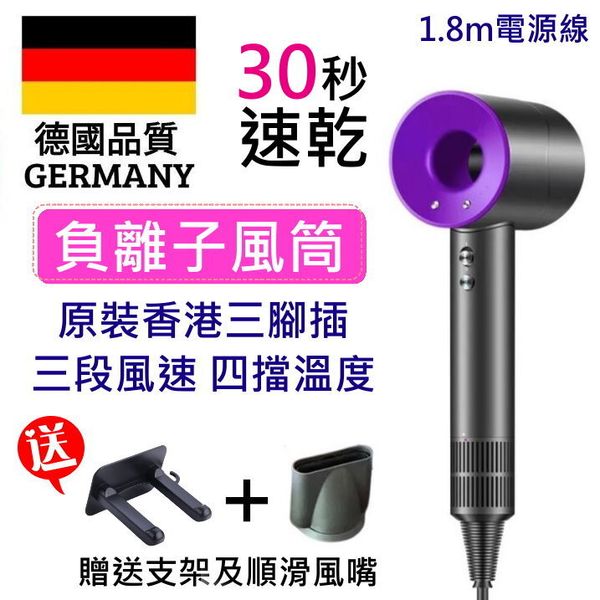 水潤負離子 無扇葉風筒 家用式 智慧型 重量超輕 超強風 速乾 智能控溫 無葉吹風機 抗毛躁 **送順滑風嘴** (紫色) 【平行進口】