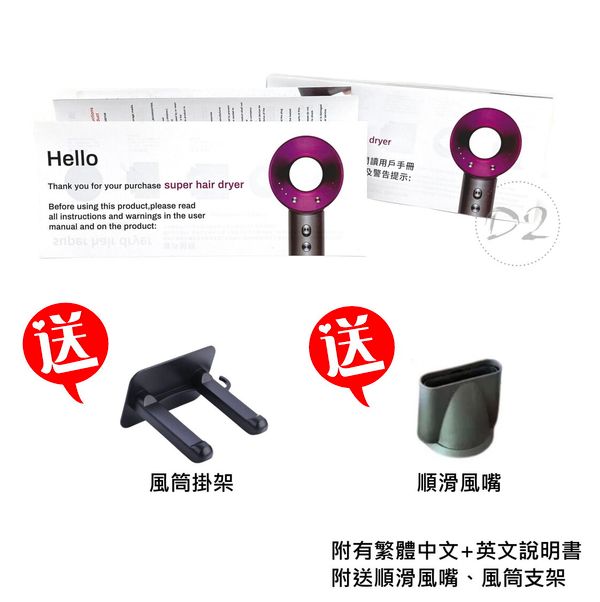 每盒附送繁體中文+英文說明書,順滑風嘴,風筒支架